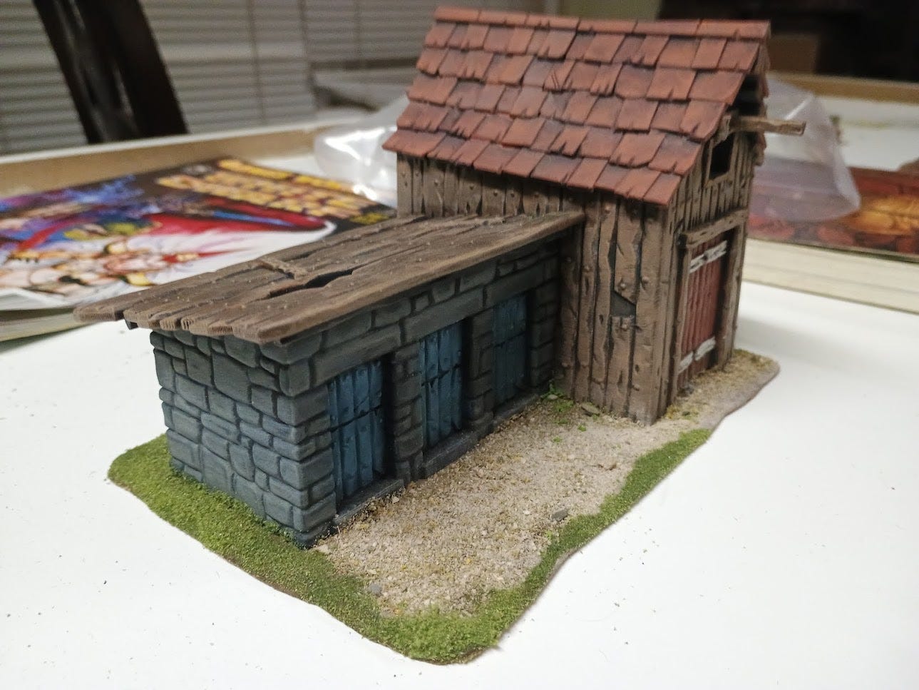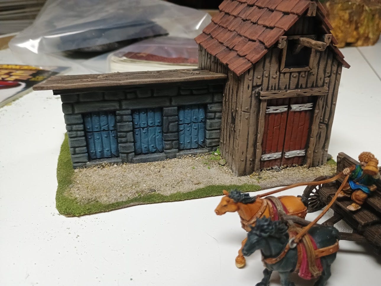 First up is a stable and barn, accompanied in the first picture by a 3D printed halfling and wagon (made by Wargames Atlantic).