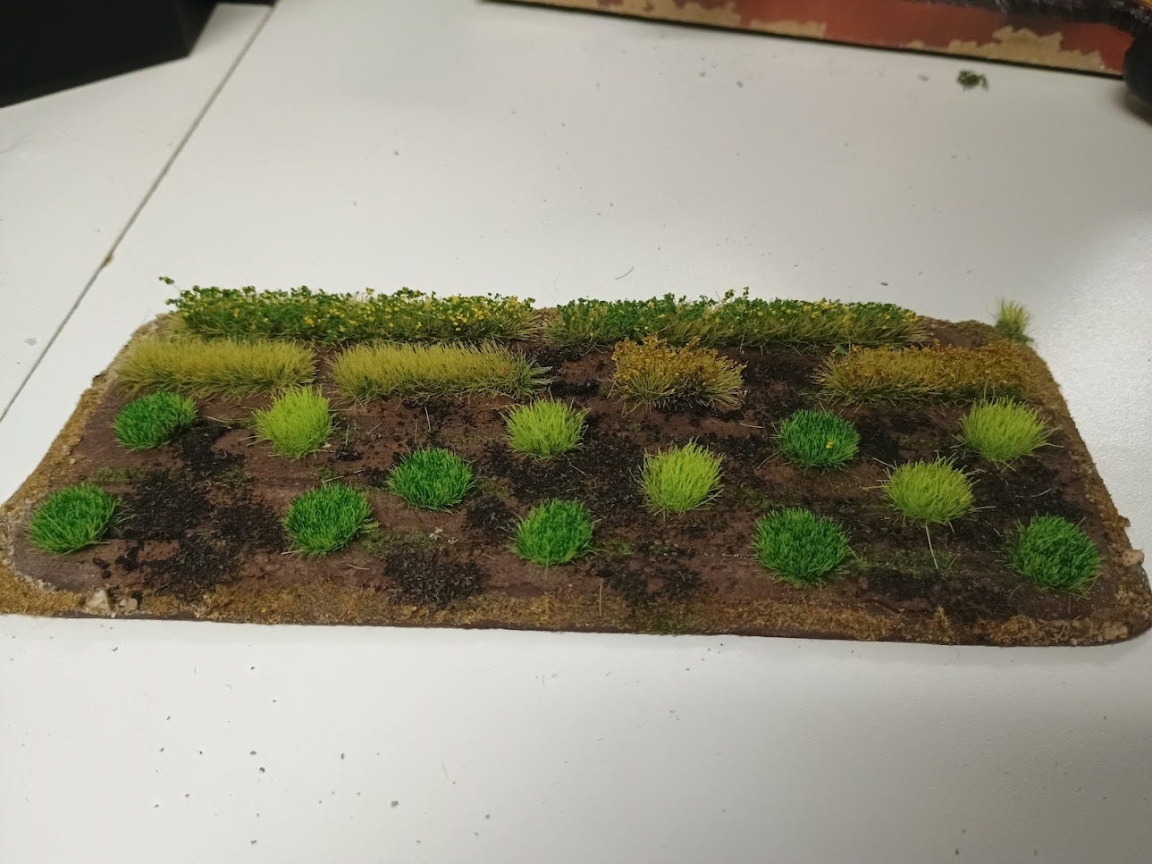 The smaller plots use ready-made vegetation from JTT Scenery Products that I bought at the local train shop and Hobby Lobby and have been waiting to use for ages.