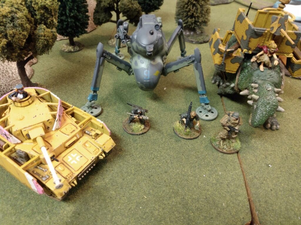 A bit of painting and a decal here or there does wonder to even cheap toys. Here’s a selection of forces from my German Pellucidar army. Two of the three vehicles are toys and one is a miniature model kit. Can you tell which is which?