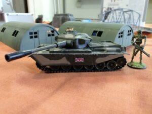 Here’s an old metal Centurion Mk 3 that I found in a bag of old 54mm soldiers. It used to be my dad’s when he was a kid in the ’70s, and I played with it in the ’80s and ’90s. It just so happens to be almost perfectly sized for 28mm Bolt Action. It hardly needs a paint job, unless you want to replace the British flag with a Sabaton ‘S’.