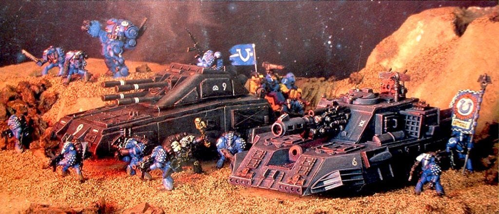 If you find yourself sneering at the idea and need permission form Big Wargame, look no farther than Games Workshop, who liked to convert GI Joe Armadillo tankettes into superheavies for their Rogue Trader era Space Marines: