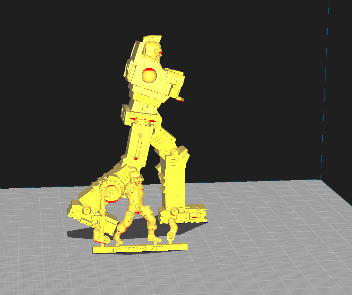 RoTD is roughly 32mm scale, and the bots are quite a bit larger. This is an example of one of the models that was released with the idea of it being made in metal or injection moulded. That bot is rougly 85mm tall, while the soldier is 32ish mm tall.